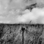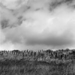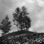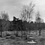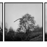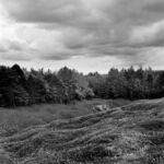 La démarche photographique de Christophe Boulard se construit à l’inverse de ces allégations puisque son intention, fortement marquée par le titre de sa série Mémoire en paysages, est de saisir, à partir de sa considération des lieux, la survivance d’une époque infernale, moins à travers des vestiges, des épaves ou des ruines que par les variations de la lumière dramatisée par l’usage de la photographie en noir et blanc. Le choix des cadrages permet ainsi de confronter le doux nuancier du gris des nuages au chatoiement obscur des sols ravinés en premier plan et des arbres calcinés par un effet de contrejour.